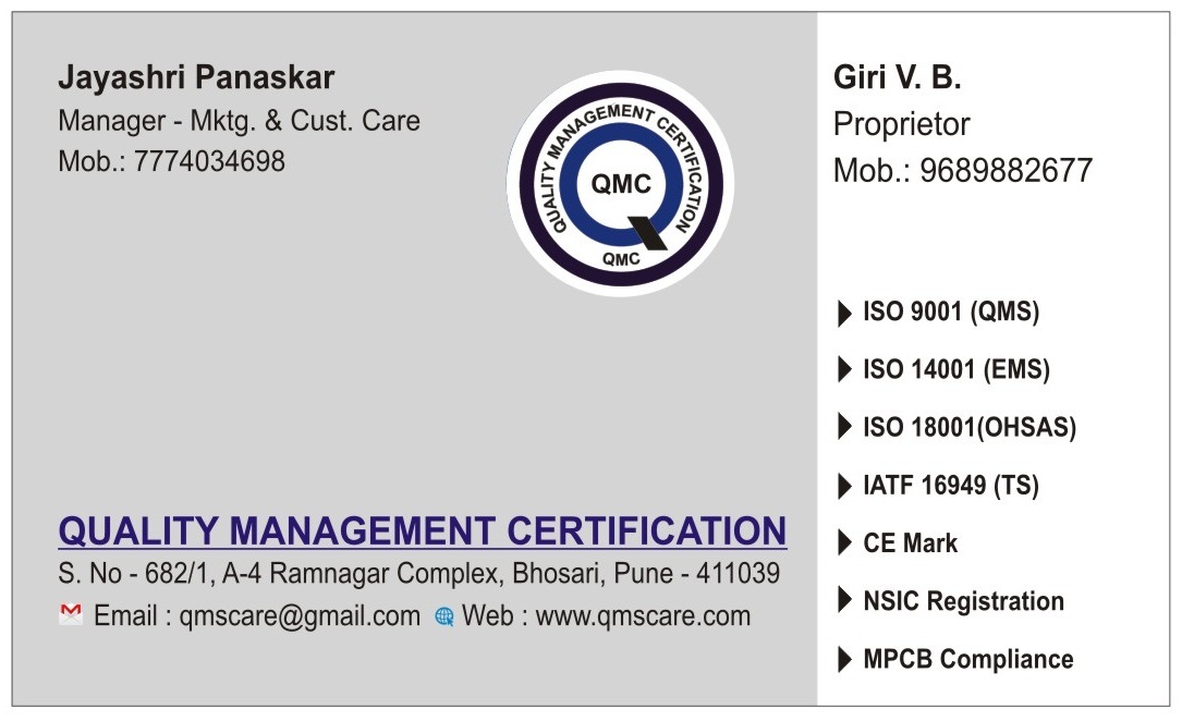 Address: Ramnagar Complex, Bhosari, Pune- 411 039. E mail : qmscare@gmail.com Ph. No.: 7774034698 / 9689882677